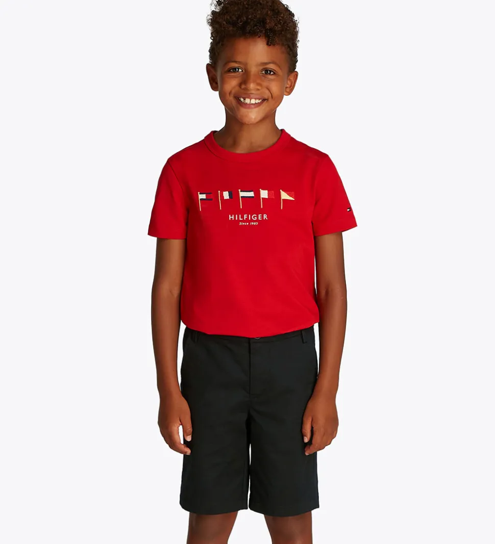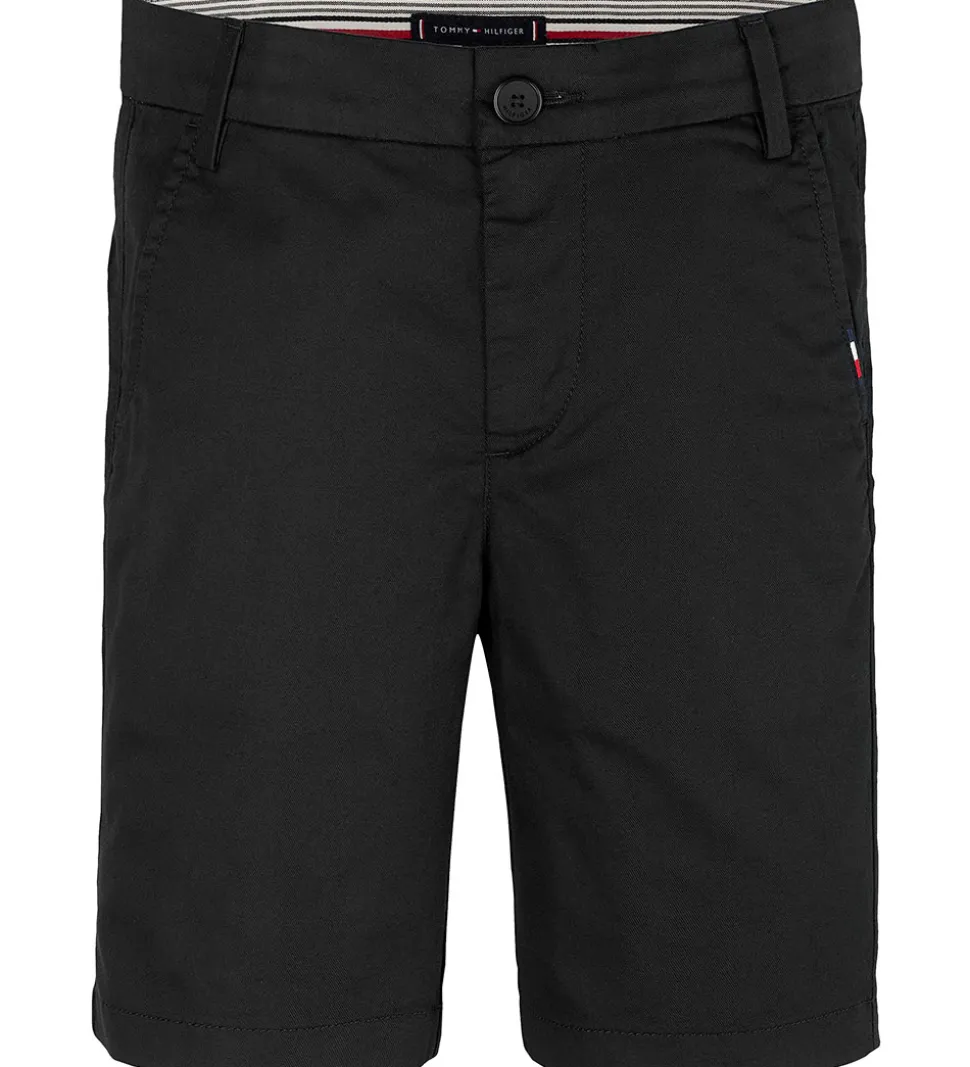 Stilfulde Tommy Hilfiger shorts i sort. Shortsene lukkes foran med en knap og lynlås. De har praktiske bæltestropper og en lomme i hver side foran samt to lommer bagpå.