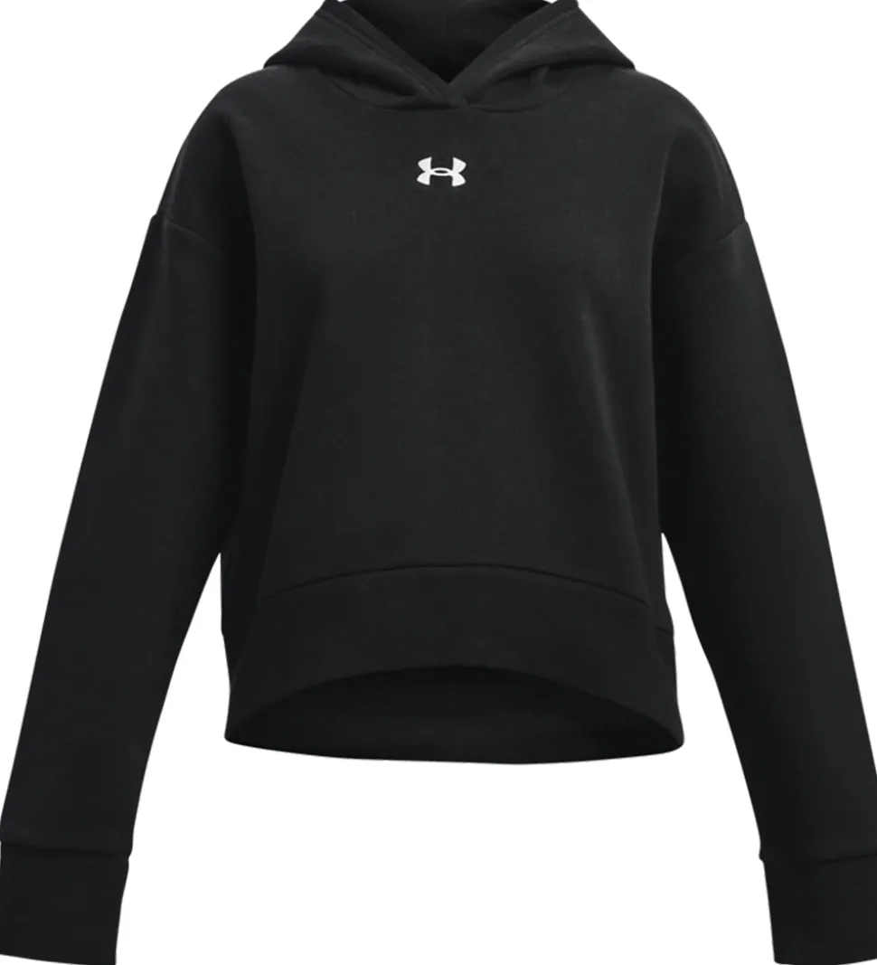 Model: UA Rival Fleece Crop Hoodie, Style: 1379517-001, Farve: Black