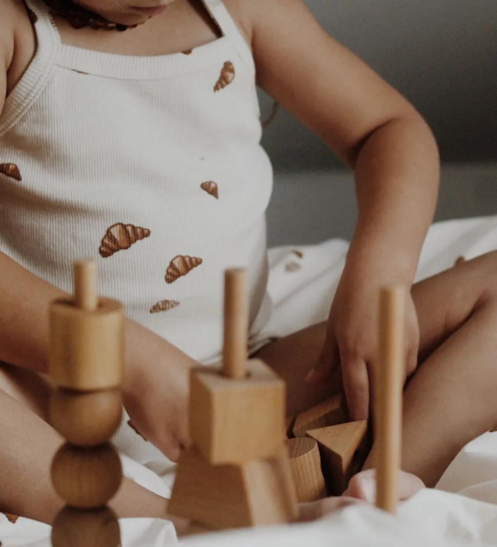 Attraktive VACVAC undertrøjer med smalle stropper fås i en 2-pak. Undertrøjerne er beige med et charmerende croissant-mønster.