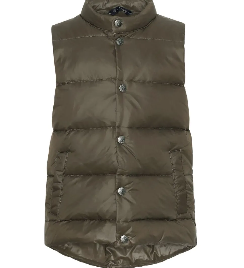 Smart Ver de Terre dunvest i ensfarvet armygrøn. Vesten er lavet i et glatvævet materiale med vandrette syninger, der giver et klassisk dunjakke look.