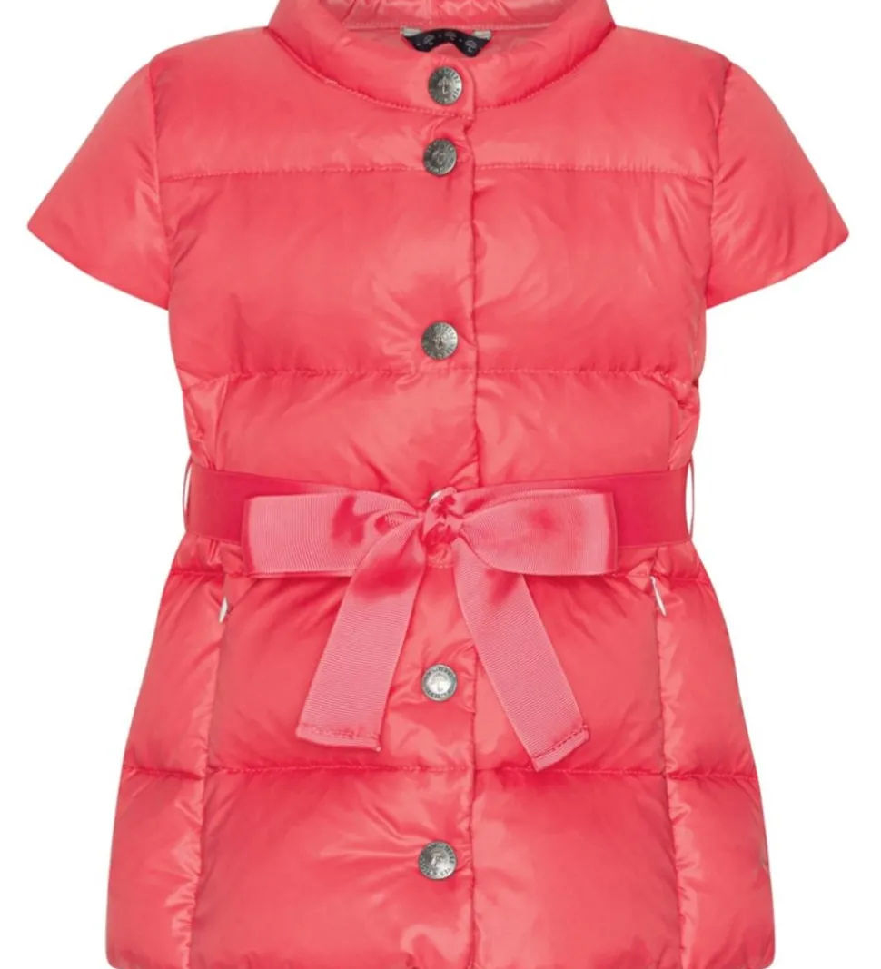 Smart Ver de Terre dunvest i mørk pink og med et pink bælte i livet. Dunvesten er lavet i et glatvævet materiale med vandrette syninger, der giver et klassisk dunjakke look.