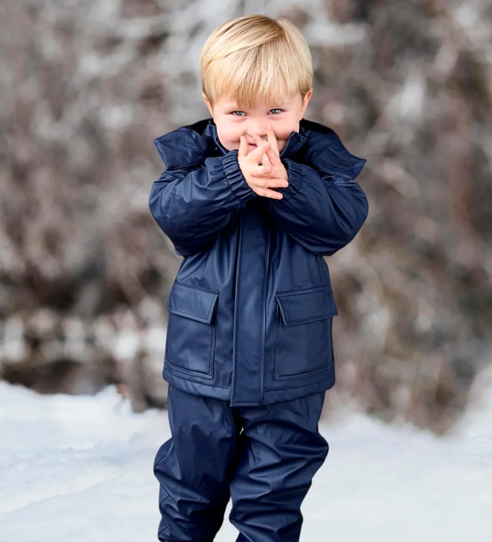 Regntøjet har en let termovattering, så barnet holdes dejligt varm på de kølige dage.