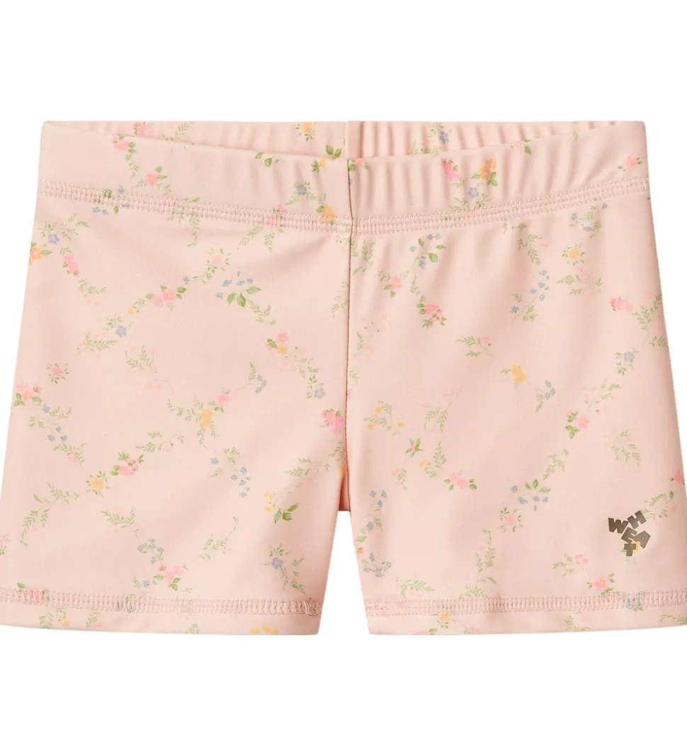 Flotte Wheat badebukser i en sart rosa farve med et blomsterprint i forskellige nuancer.