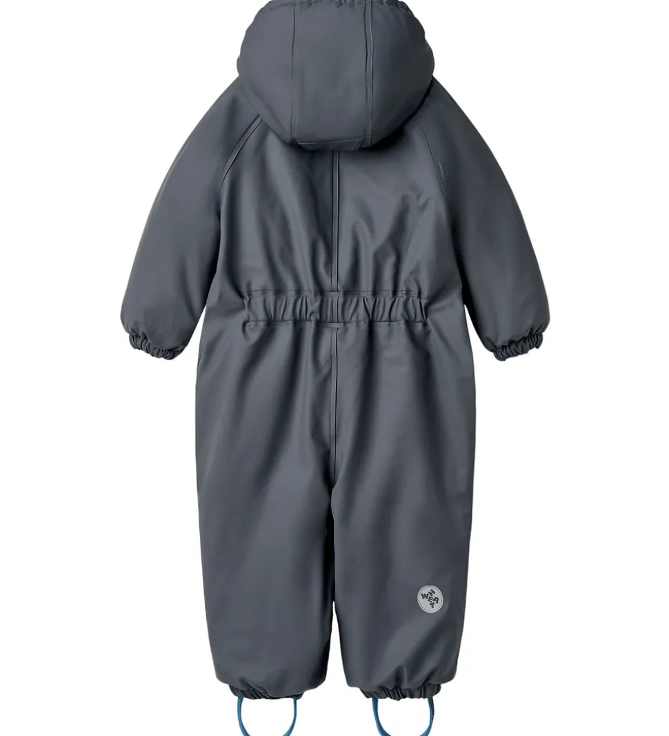 Wheat flyverdragten har to skrå lynlåsåbninger med dobbelt vindstolpe foran. Den ene lynlås kan åbnes fra hagen og hele vejen ned ad venstre bukseben. Lynlåsen i højre side kan åbnes til taljen. Indvendigt er der en lukning over brystet med velcro. Fortil er der en lille lomme, der åbnes med en trykknap. Flyverdragten har aftagelig hætte med trykknapper, og kan justeres med velcro på toppen. Den er med ribkrave, som er behagelig for barnet at have tæt på huden.