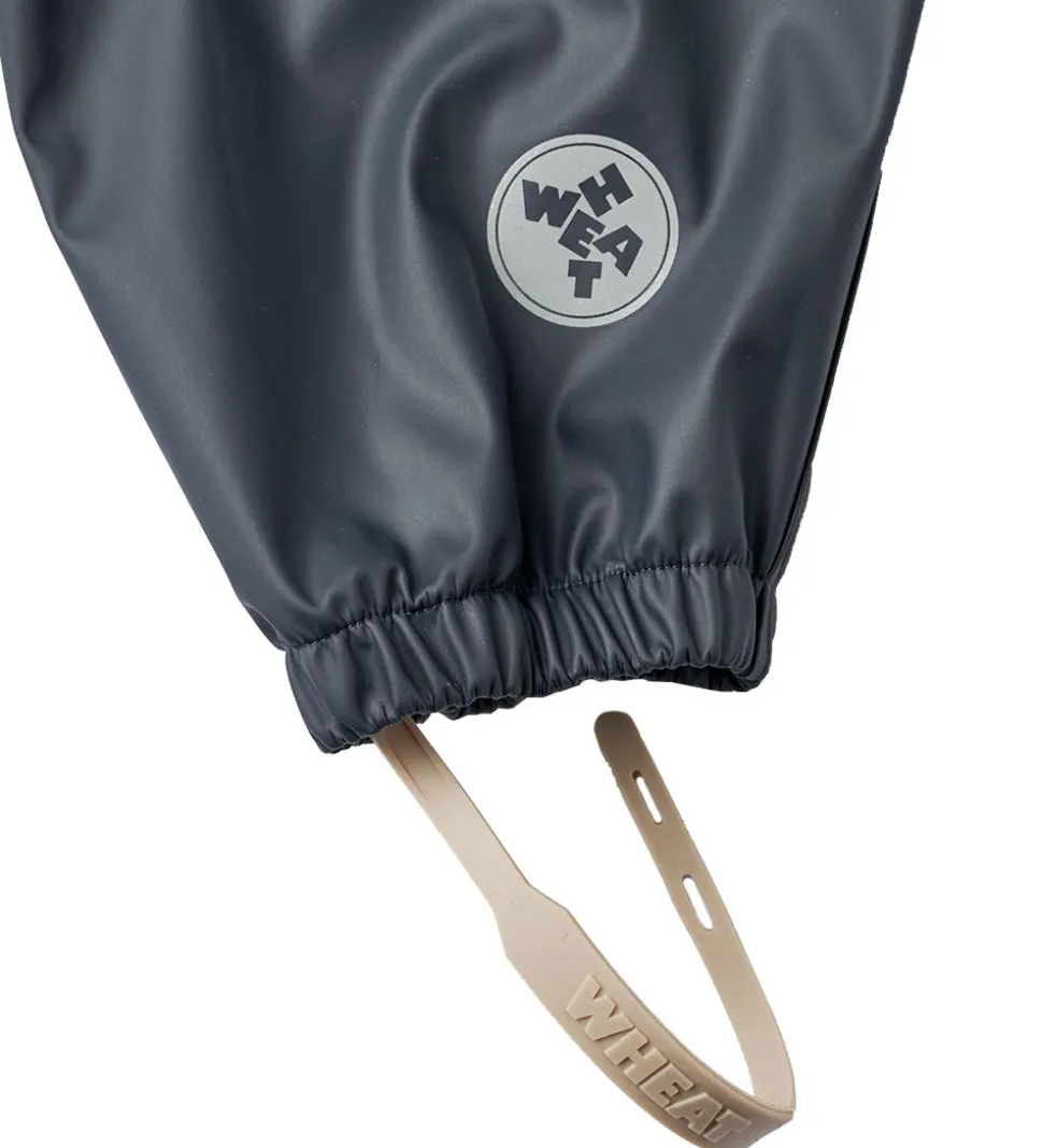 Wheat regnbukserne har elastikkanter om livet og anklerne, og der er aftagelige, justerbare gummistropper til at sætte under fodtøjet.