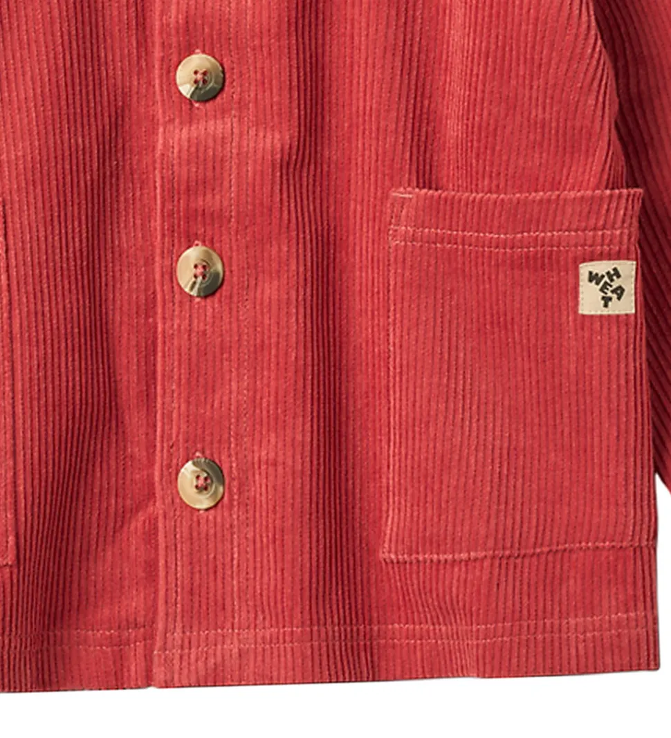 Smart Wheat skjorte i ensfarvet rødt fløjl. Wheat skjorten har lange ærmer og en klassisk krave, der giver et tidløst udtryk. Den lukkes med store knapper, og i siderne sidder der store lommer.