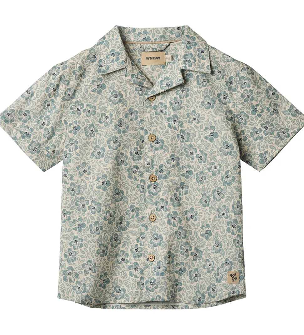 Stilfuld Wheat skjorte med korte ærmer i en lys blå nuance med et fint blomsterprint. Skjorten har knaplukning og en komfortabel pasform, perfekt til varmere dage.