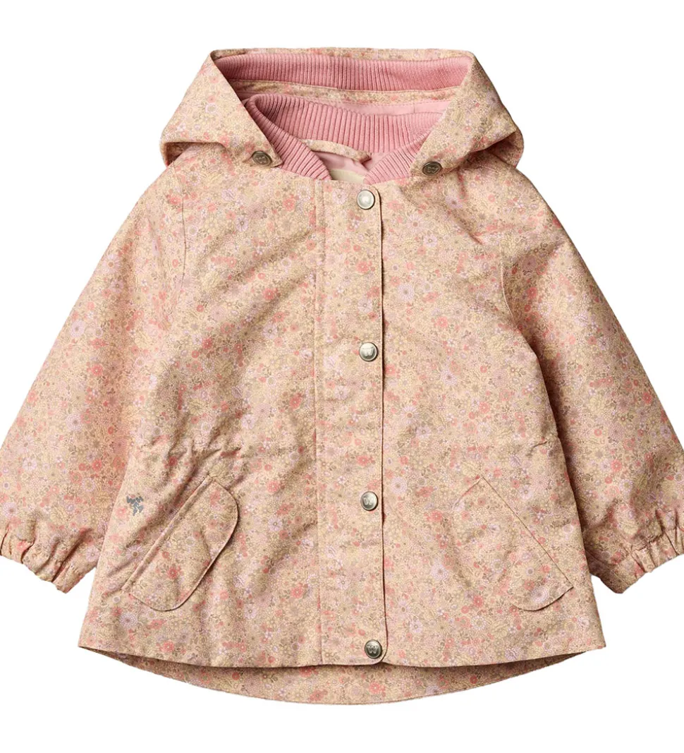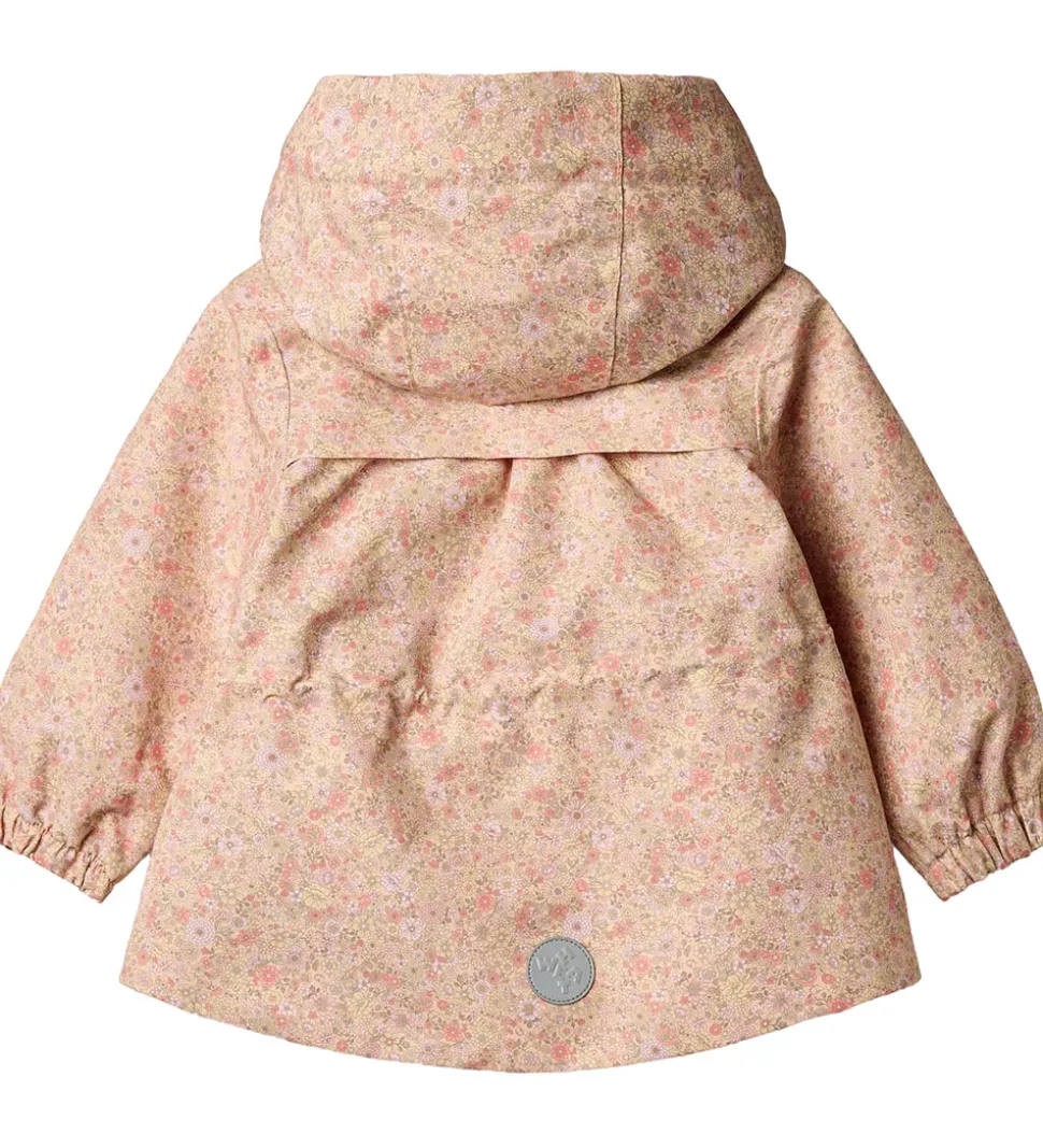 Wheat sommerjakken har en aftagelig hætte, som sidder fast med trykknapper. I toppen kan den justeres med velcro, og i ansigtsåbningen har den en bred ribkant. Ærmerne har elastikkanter, og i halsåbningen har den en blød ribkant. I taljen kan den strammes ind med en elastiksnøre på indersiden, så den får en flot, figursyet facon.
