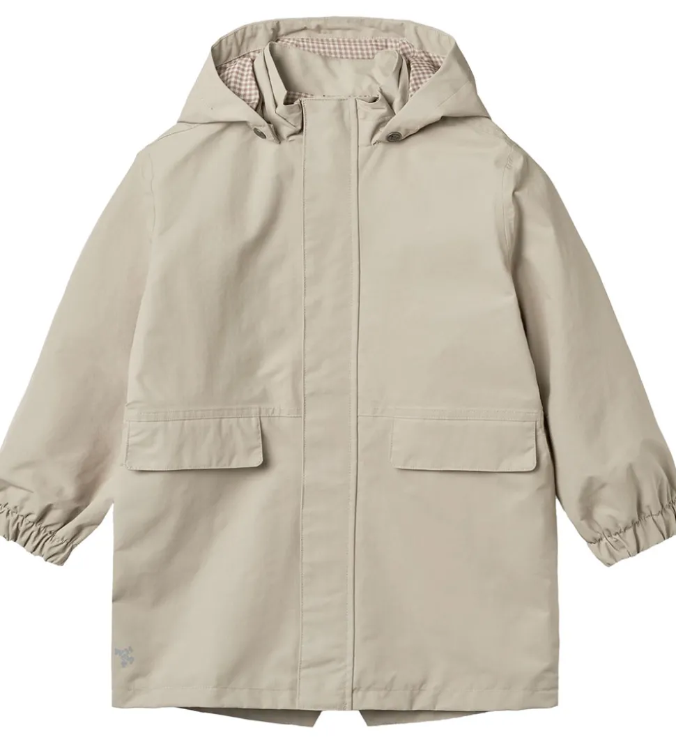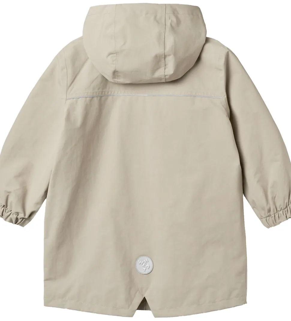 Wheat sommerjakken er en lang parkamodel med slids bagtil i livåbningen. Sommerjakken har en aftagelig hætte, som sidder fast med trykknapper, og i toppen kan den justeres med velcro. Ærmerne har elastikkanter.