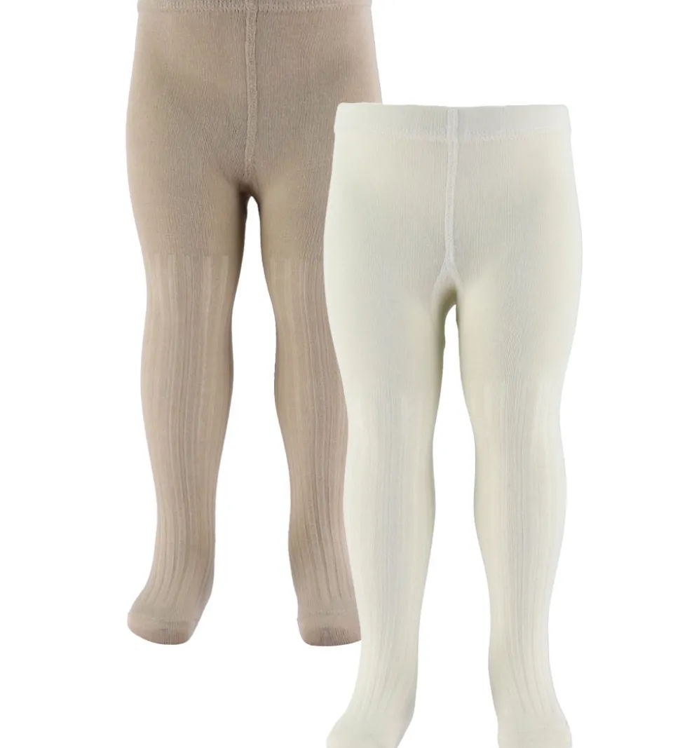 Flotte Wheat strømpebukser solgt i en 2-pak i ensfarvet hvid og mørkebeige med ribstruktur. Disse strømpebukser tilbyder komfort til daglig brug og er designet til at passe perfekt til små størrelser.