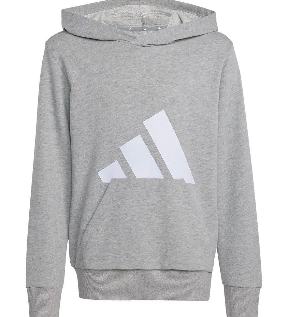 Skøn adidas Performance hættetrøje i gråmeleret med et stort, hvidt logoprint på fronten. Hættetrøjen har en fastsyet hætte og en stor kængurulomme på maven. Den har lange ærmer med brede ribkanter i ærme- og taljeåbning.
