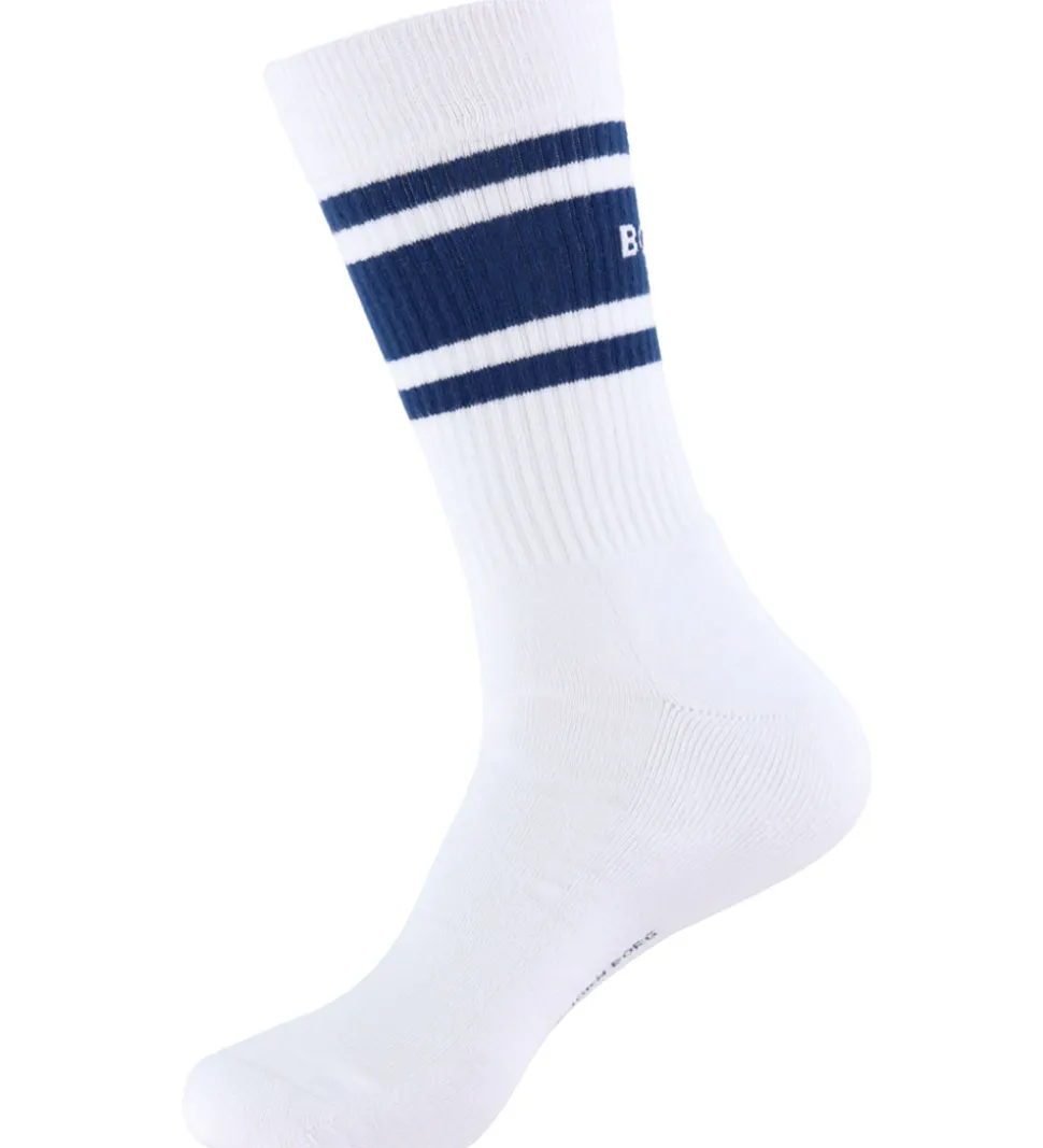 Stilfulde Björn Borg strømper solgt i en 2-pak i hvid med vandrette striber i henholdsvis grøn og mørkeblå. Strømperne har en ribkant øverst, der sikrer en god pasform. Björn Borg strømperne udmærker sig ved deres enkle og moderne design.