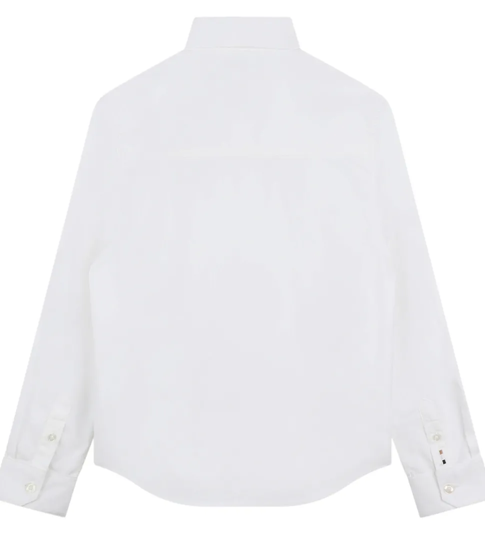 Stilren BOSS skjorte i en klassisk hvid farve. Skjorten har lange ærmer og en tidløs krave. Knaplukningen foran understreger det enkle design, og diskret broderet logo på brystet fremhæver brandet BOSS.