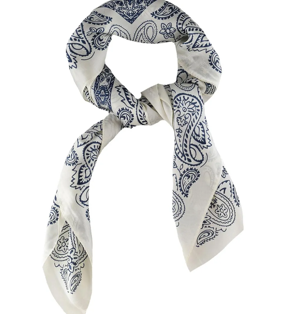 Smart By Stær tørklæde i hvid, med et flot mønster i blå.