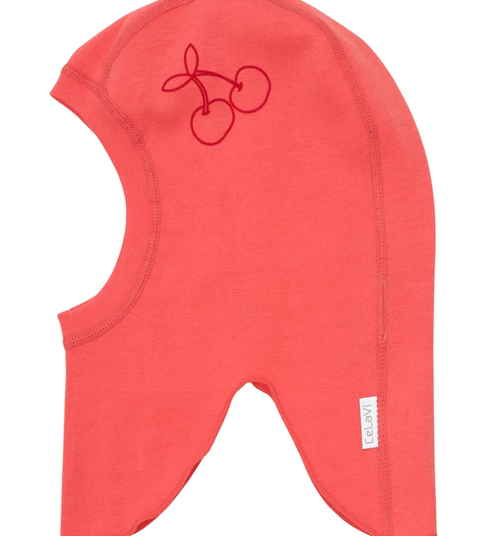 Smart CeLaVi elefanthue i ensfarvet orangerød med et sødt kirsebærprint.