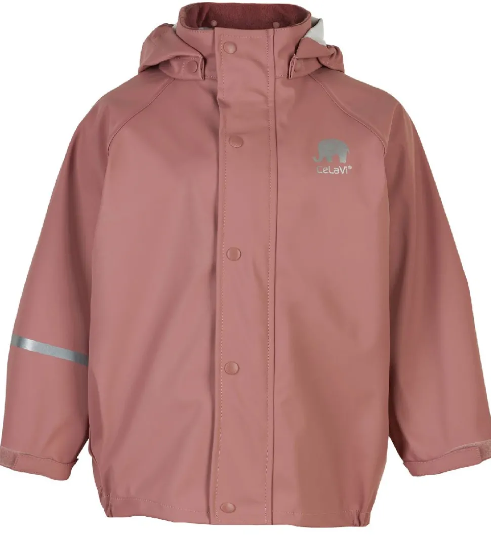 Fint CeLaVi regntøj i støvet rosa PU med seler.