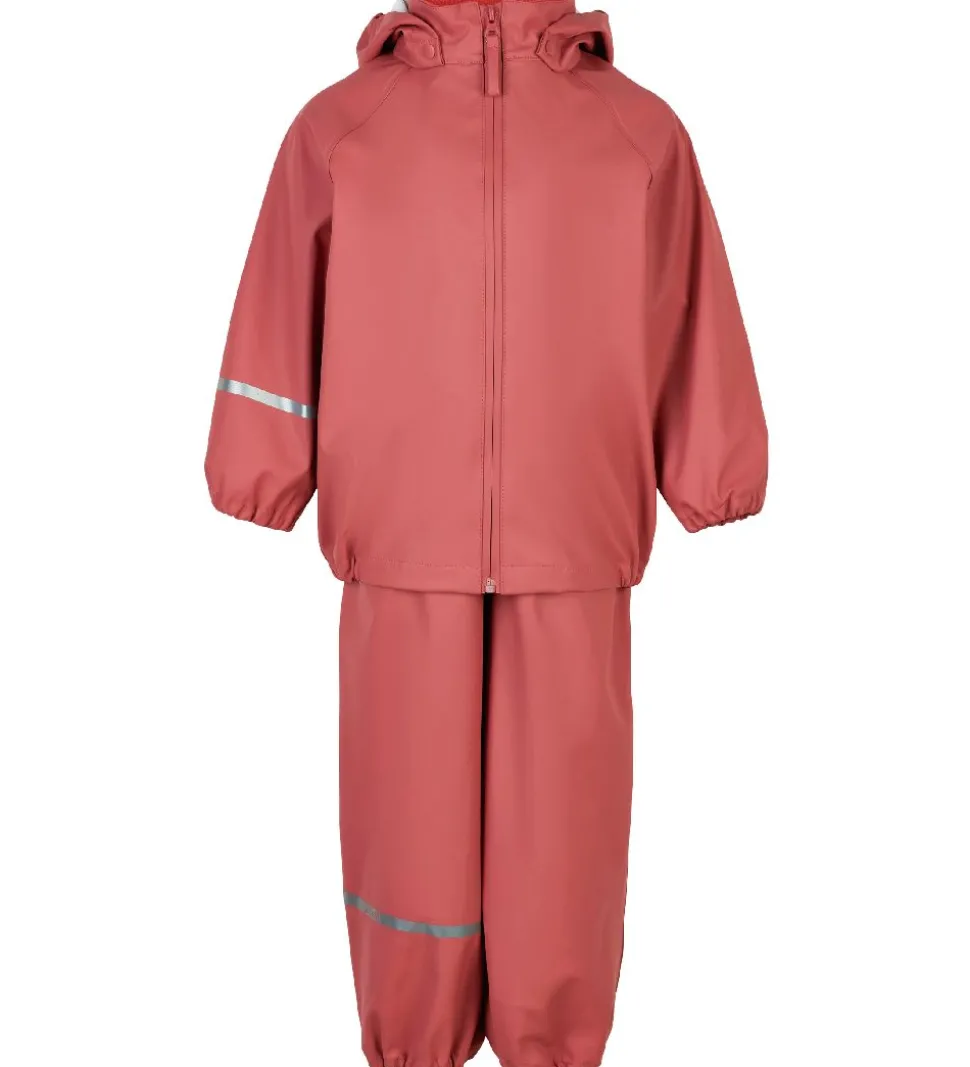 Flot CeLaVi regntøj i støvet rød PU med seler.