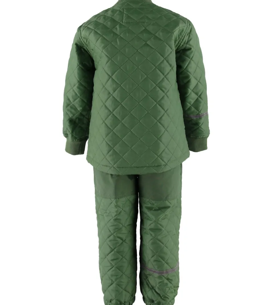 Flot CeLaVi termotøj i en armygrøn, og sættet består af en termojakke og et par termobukser. På jakken er navnet “CeLaVi” broderet øverst til venstre.