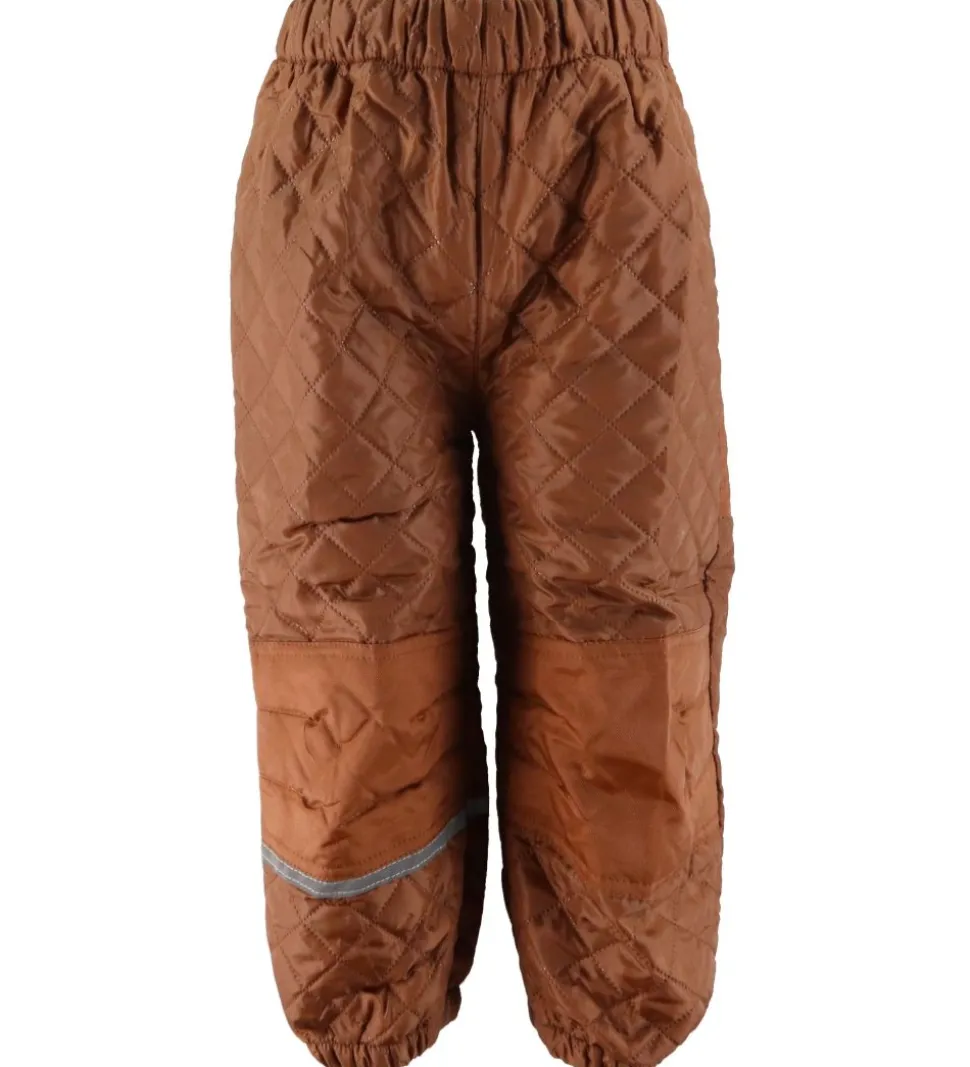Godt CeLaVi termotøj i ensartet brun. Sættet består af en termojakke og et par termobukser. På jakken er navnet “CeLaVi” broderet øverst til venstre.