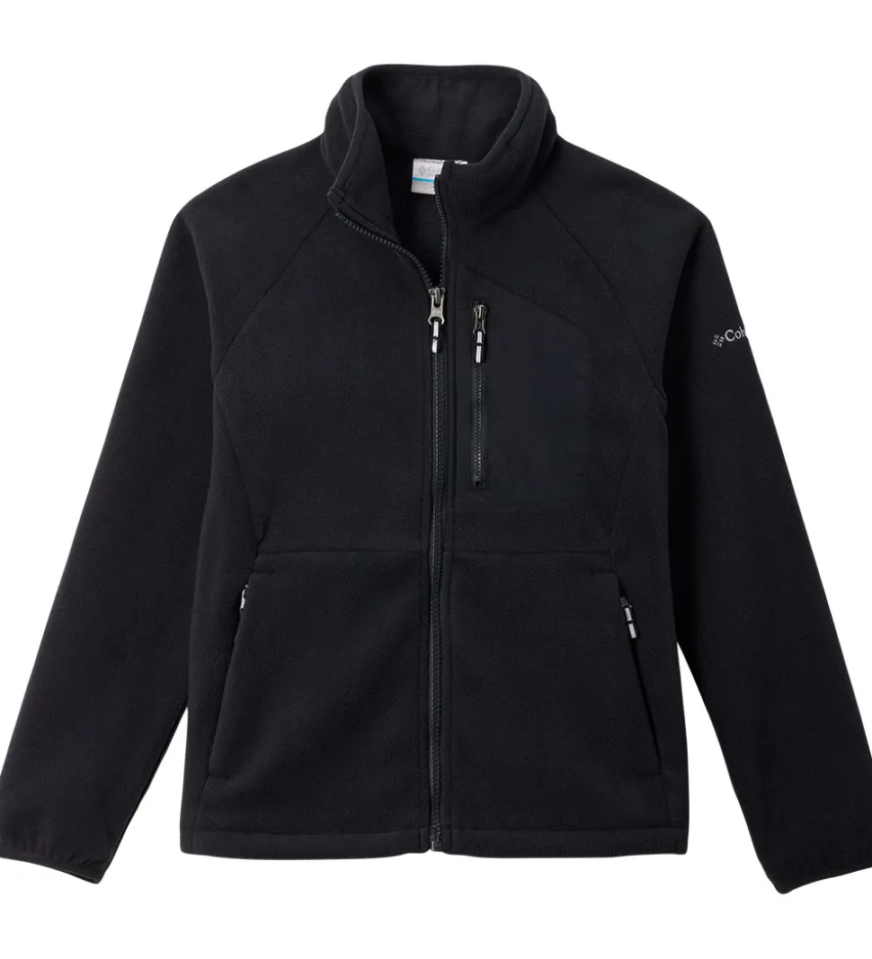 Columbia fleecejakken har lange ærmer og en mellemhøj halskrave. Fleecejakken åbnes fortil med en lynlås, og der er en venstre brystlomme samt en lomme i hver side med lynlåslukninger. Fleecejakken har elastikkanter i ærmeåbningerne, og den er i en lækker fleece-kvalitet.