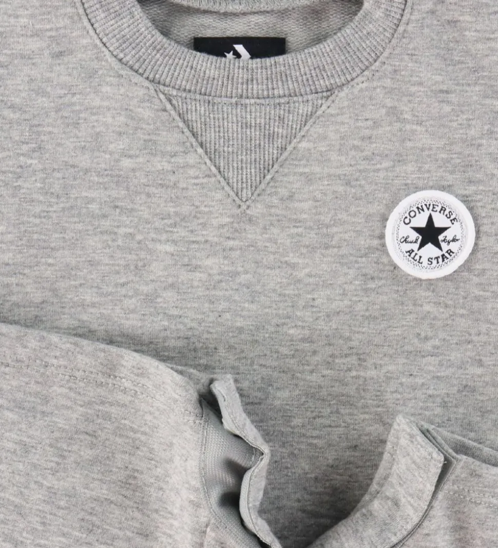 Skønt Converse sæt bestående af en sommerdragt og et par strømper i meleret grå med logo. Strømperne er printet som en Converse-sko med en hvid bund og hvide snørebånd.