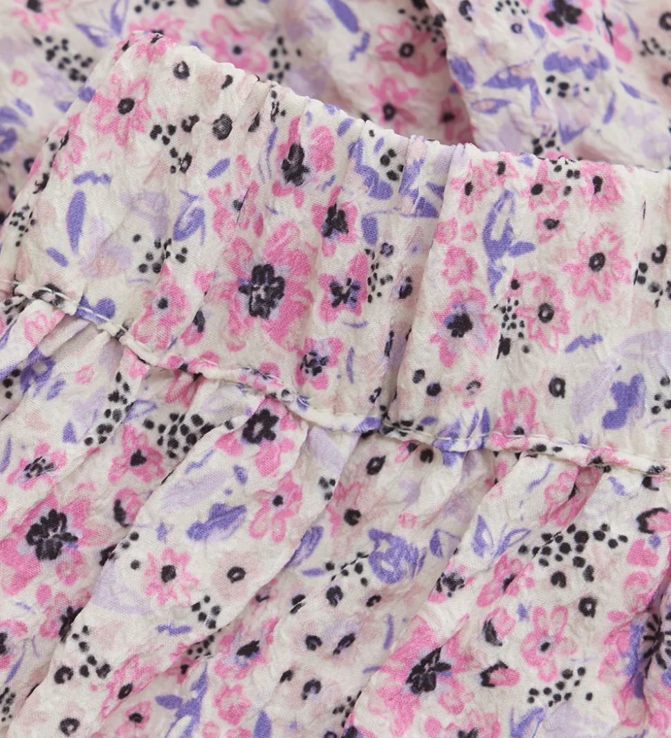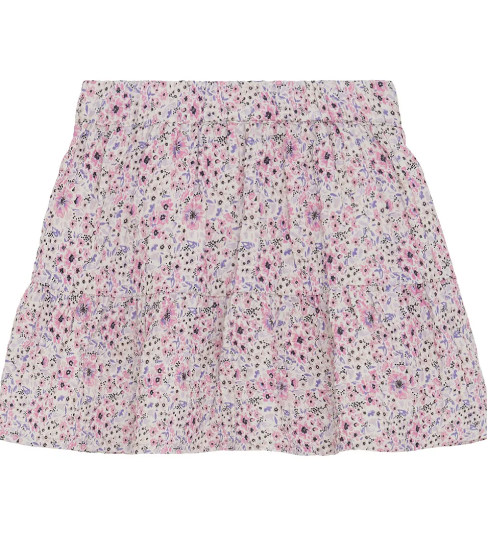 Smuk Creamie nederdel med et delikat alloverblomsterprint i rosa og lilla nuancer. Denne nederdel har et elastisk bånd i taljen og giver en fin pasform til enhver anledning.