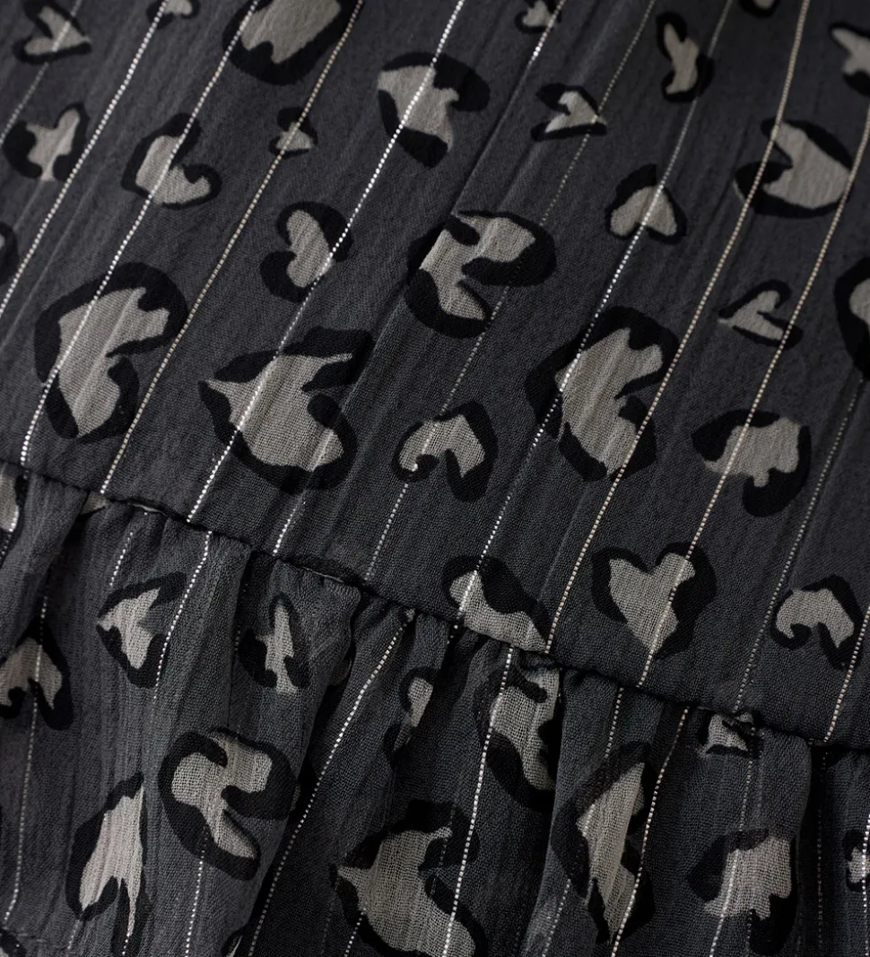 Stilfuld Creamie nederdel med et flot leopardprint i nuancer af grå. Creamie nederdelen har en behagelig elastisk kant i livet, der sikrer en god pasform. Nederdelen er udstyret med fine plisseringer og nederst en dobbelt lag detalje, der tilføjer ekstra elegance. Nederdelen er foret med glatvævet bomuld.