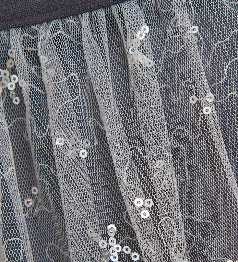 Flot Creamie tylnederdel i grå med et fint, broderet mønster og sølvfarvede pailletter.
