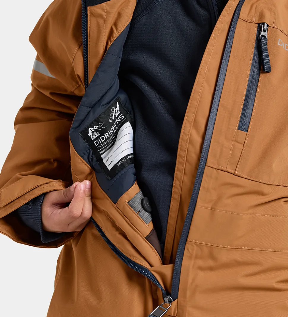 Ved ærmerne er der praktiske snefang med brede ribkanter og et lille hul til tommelfingeren, og ærmekanten kan strammes ind med en velcrorem. På indersiden ved ærmekanten er der en praktisk plastring, som Didriksons handsker og luffer kan hægtes på.