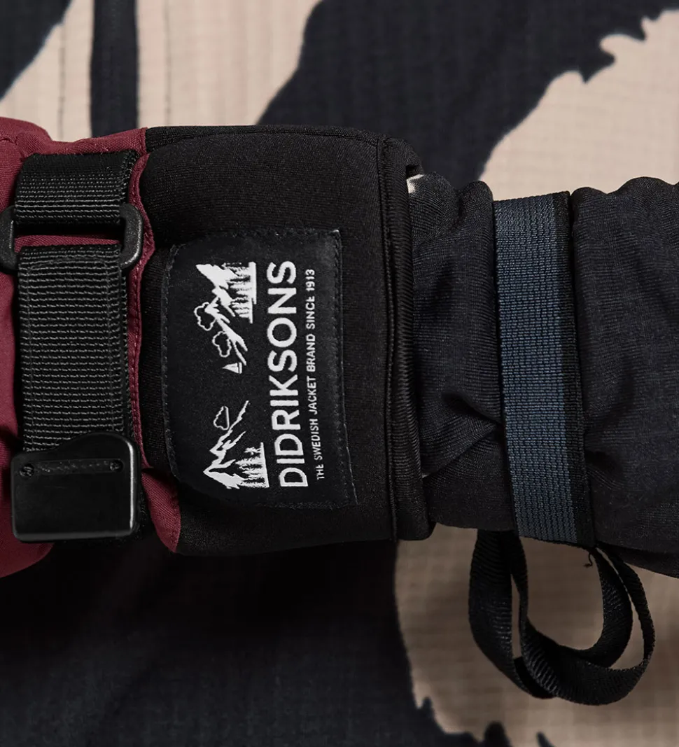 Didriksons lufferne har en smart neoprenkant i åbningerne samt elastikkant og velcrojustering omkring håndleddet, så kulde, sne og regn ikke let trænger ind. I håndfladerne er der belægninger af firkantede dupper, der giver en god gribeflade.