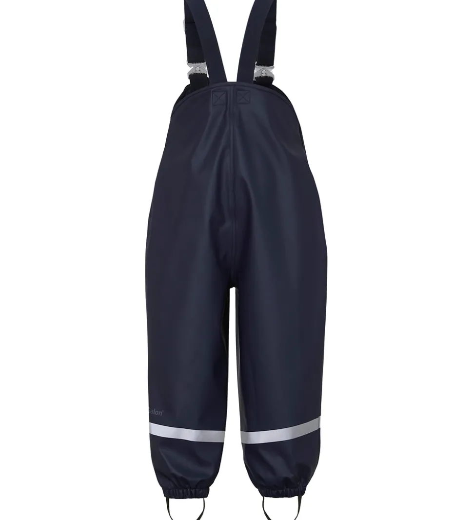Smarte Didriksons regnbukser i ensartet navyblå Galon® med refleks- og logoprint.