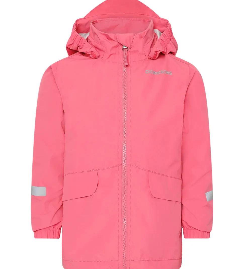 Didriksons sommerjakken har en aftagelig hætte, der er fæstnet med trykknapper langs den høje halskrave. Hættens ansigtsåbning har elastikkanter i siderne og en skygge i toppen. Ærmerne har praktiske elastikkanter i åbningerne.
