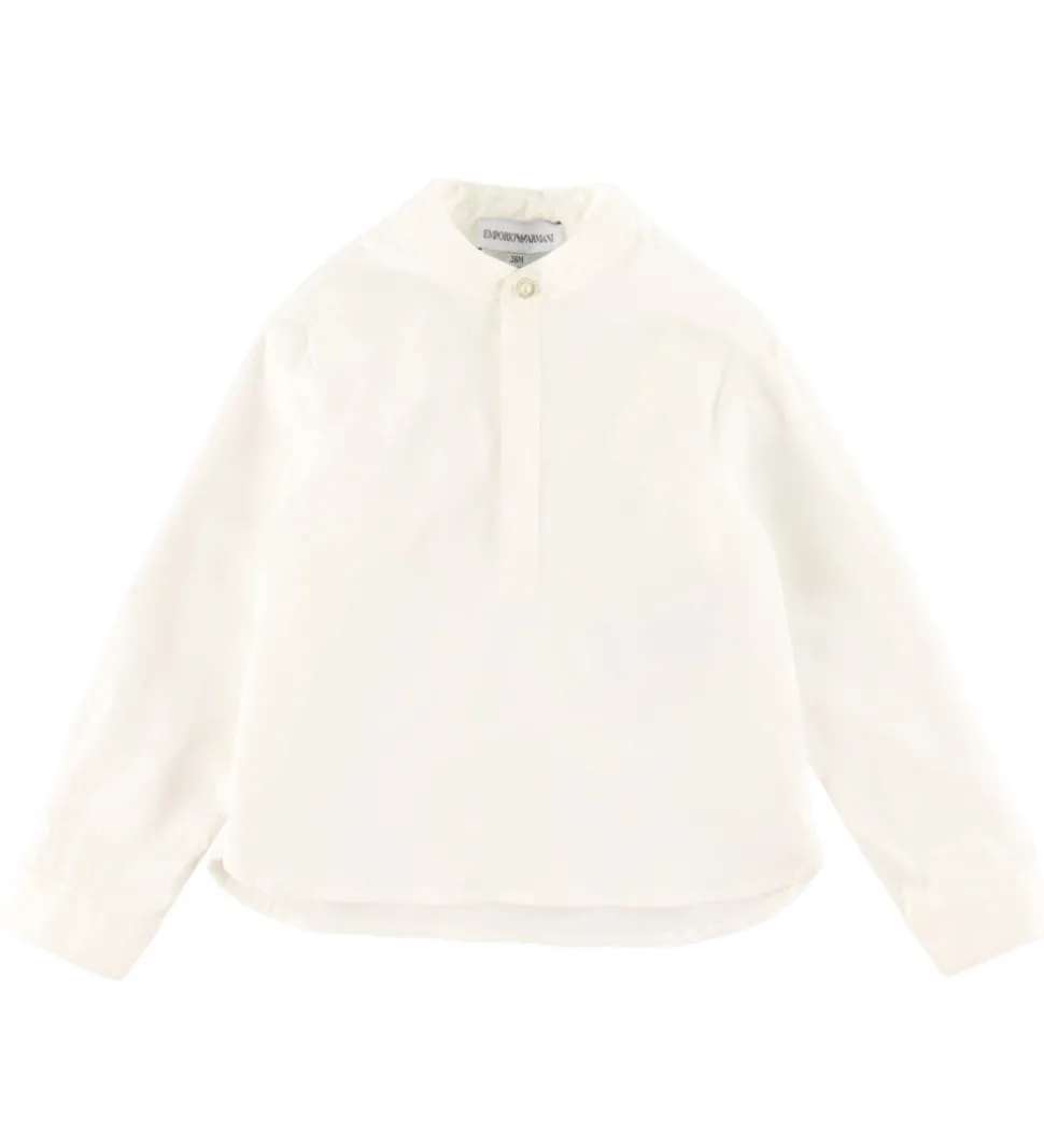 Emporio Armani skjorten har lange ærmer med manchetknapper, og den åbnes fortil med skjulte knapper. Skjorten er lavet i en let strækbar kvalitet.
