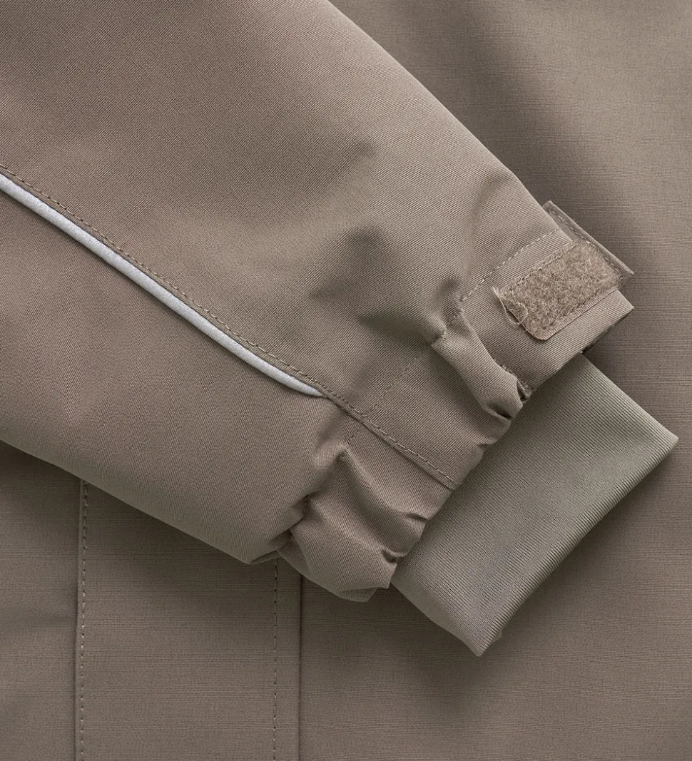 Ærmerne har praktiske snefang med brede kanter i strækbart polyester og med et hul til tommelfingeren, og ærme-elastikkanterne kan strammes ind med velcro. Benåbningerne har elastikkanter i åbningerne samt aftagelige, justerbare støvlestropper i gummi.