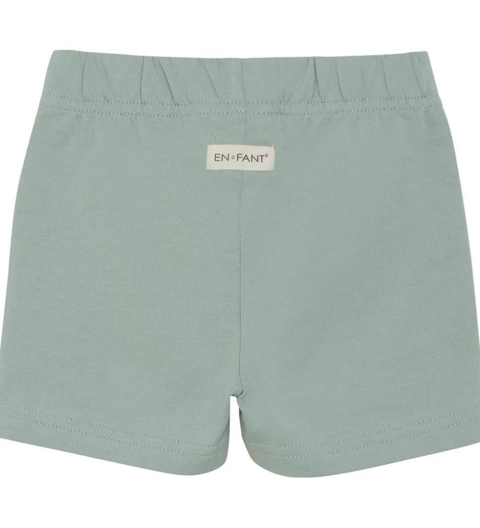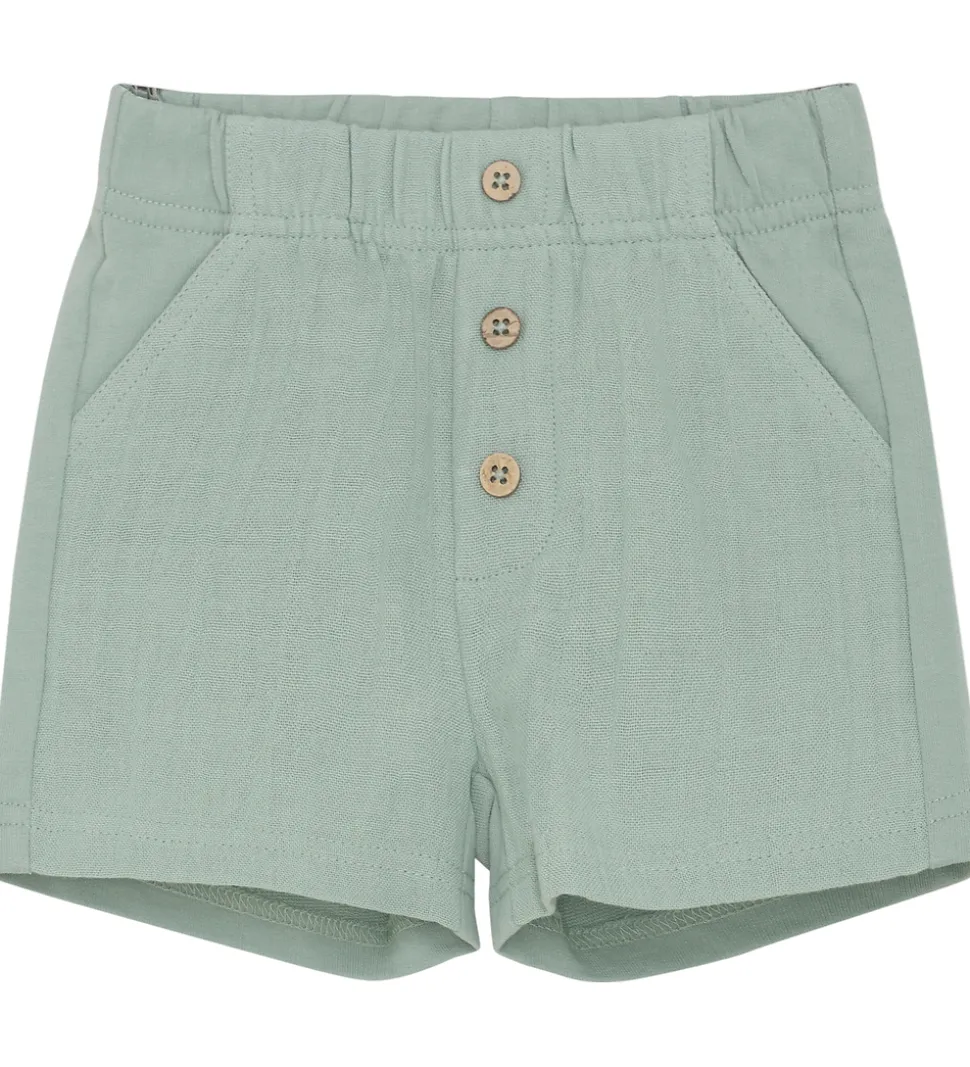 Stilfulde En Fant shorts i en blød, grøn nuance med musselin-struktur foran og sweatstof bagpå. En Fant shortsene har en elastisk talje og tre dekorative knapper foran, samt praktiske skrålommer.