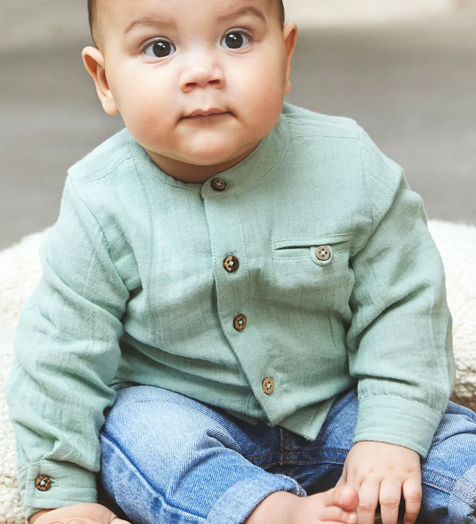 Smart En Fant skjorte i en blød, grøn nuance med musselin struktur. Skjorten har lange ærmer og en fin knaplukning foran samt en lille brystlomme, hvilket giver et fint og klassisk look.