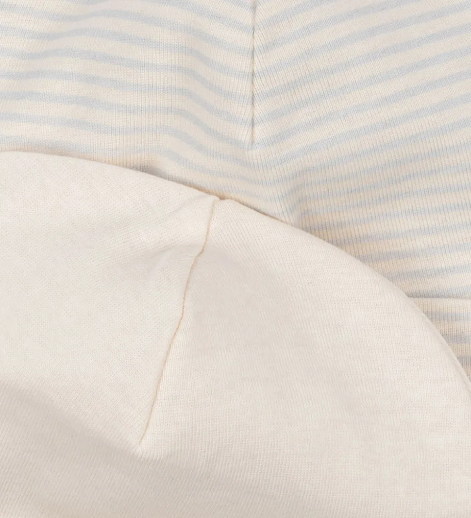 Elegante Fanga Fontana huer i en praktisk 2-pak. En i en lys cremefarve med et diskret print af to katte, og en med et klassisk stribemønster i cremehvid og lyseblå.