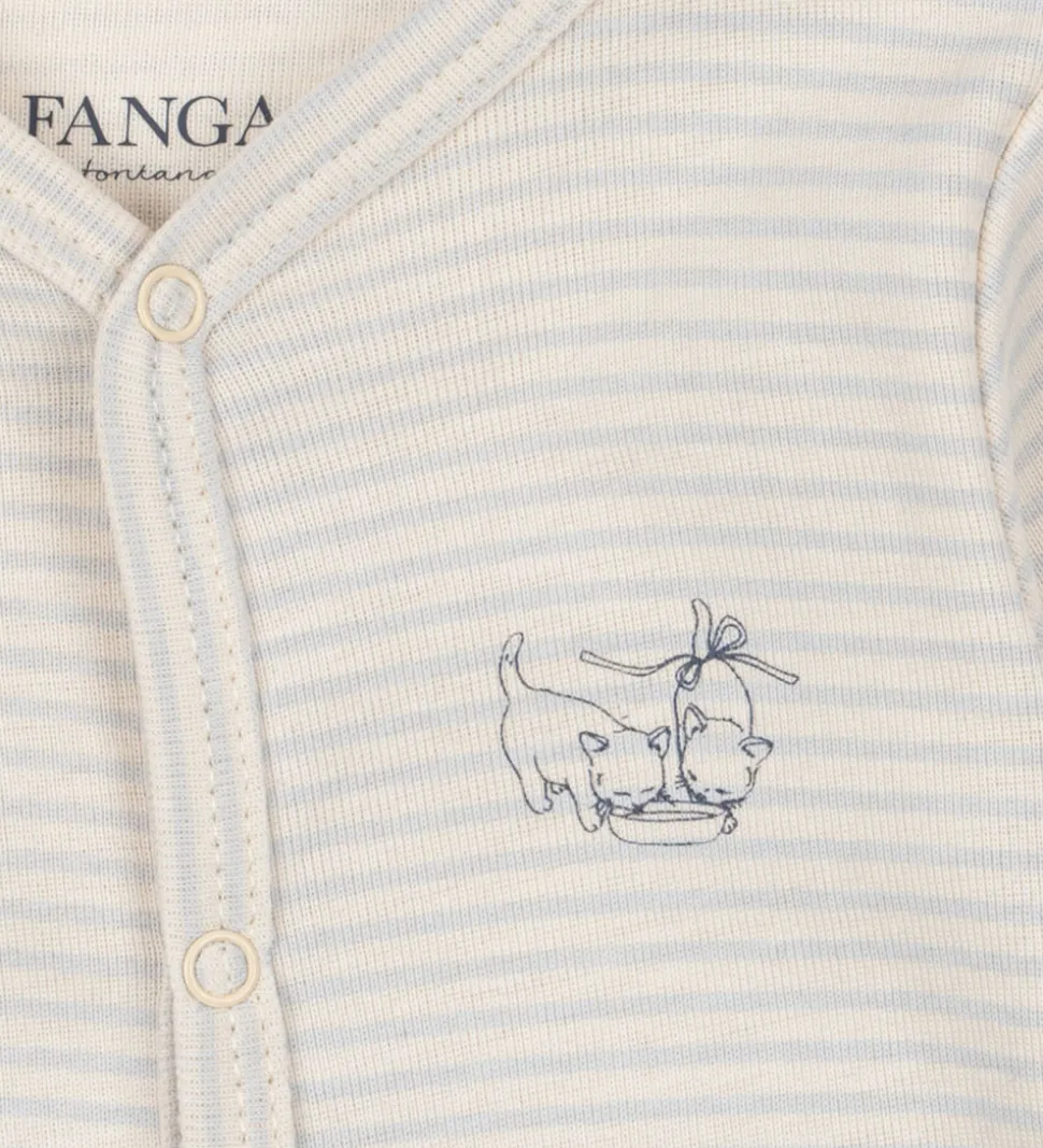 Behagelig Fanga Fontana natdragt med lange ærmer og et klassisk stribemønster i lyseblå og hvid.