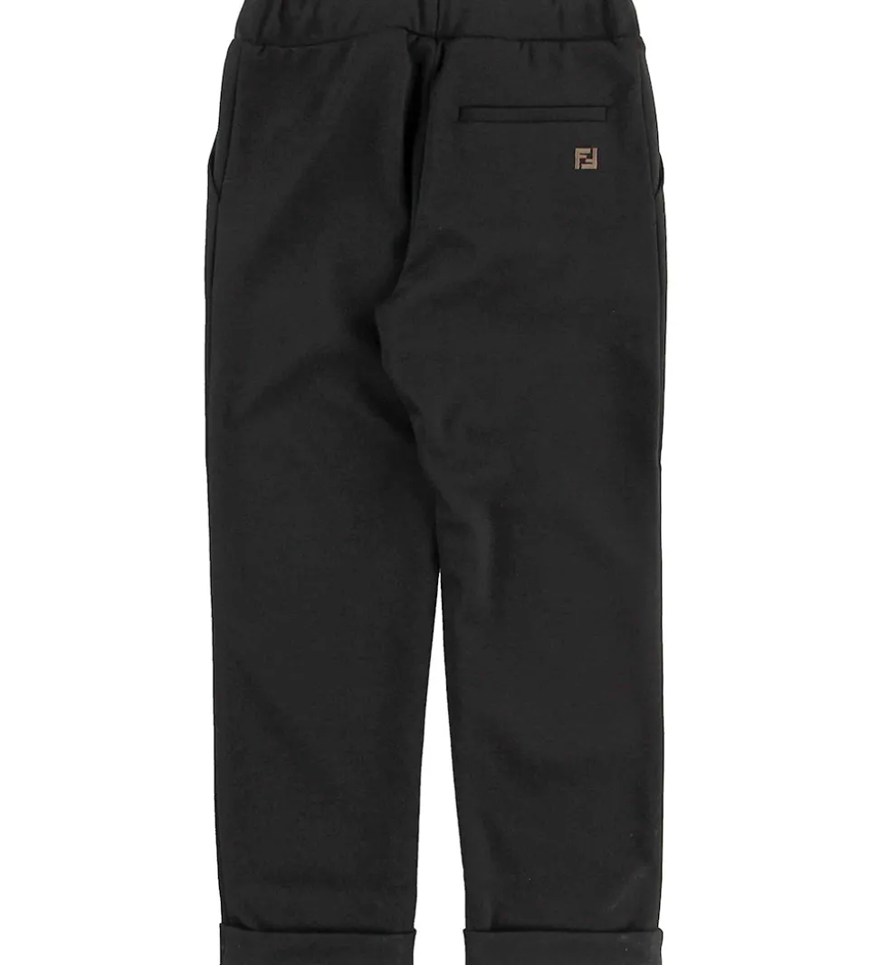 Lækre Fendi Kids buser i sort i en strækbar kvalitet. Bagpå i højre side er det broderet et brunt Fendi-logo.