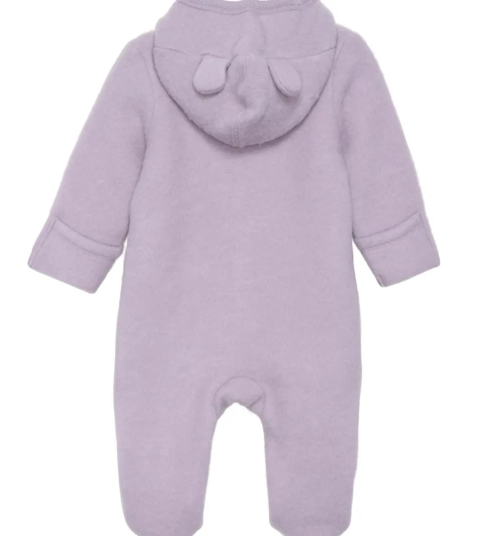 Lækker Fixoni køredragt i lilla, filtet uld med to søde ører på hætten.