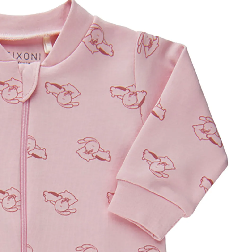 Charmerende Fixoni natdragt i lyserød, dekoreret med et sødt print af små dyr.