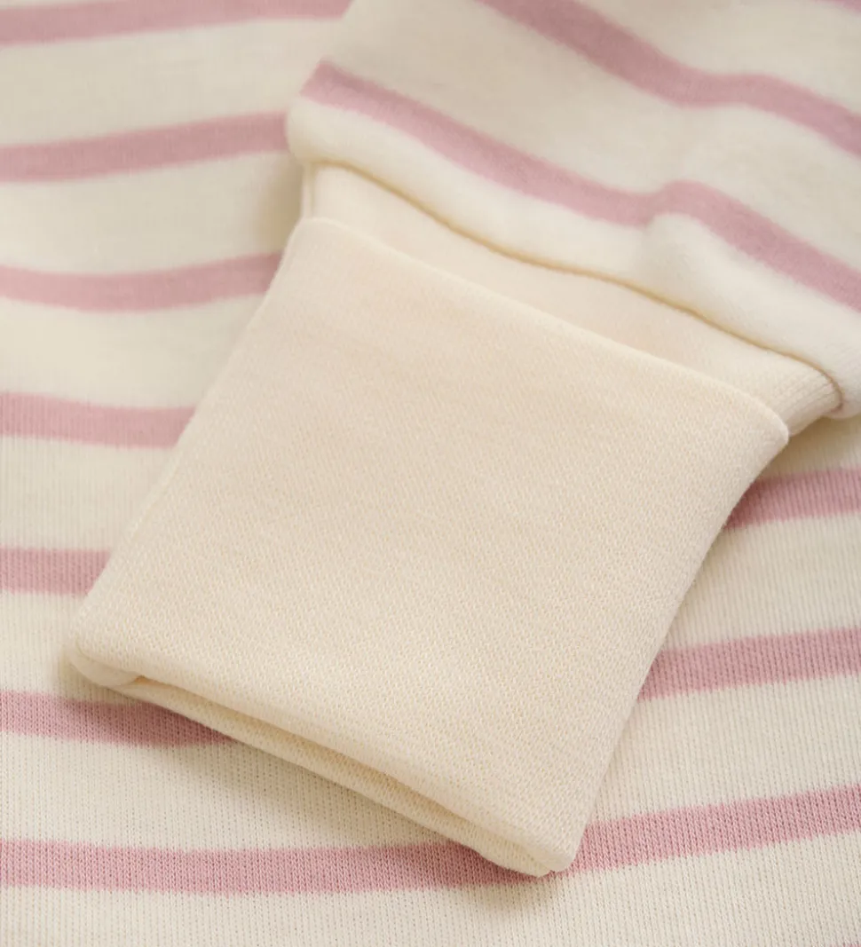 Fin Fixoni natdragt i hvid med smalle, vandrette striber i rosa.