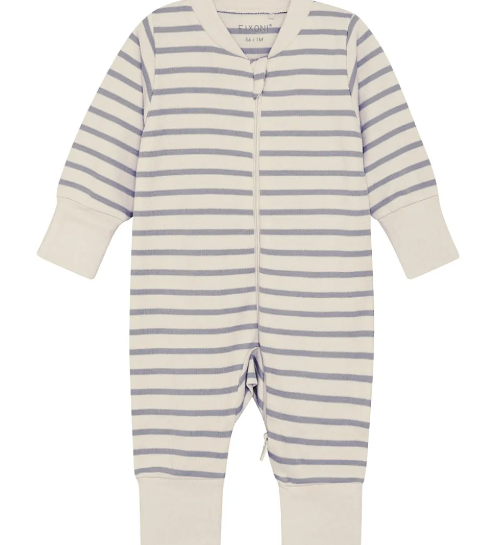 Fixoni natdragten har lange ærmer og ben med ekstra brede kanter og praktiske ombuk. Natdragten åbnes med en lynlås ned ad fronten og ned ad det venstre ben. Lynlåsen har en hagebeskytter og to skydere, så den både kan åbnes oppefra og nedefra.