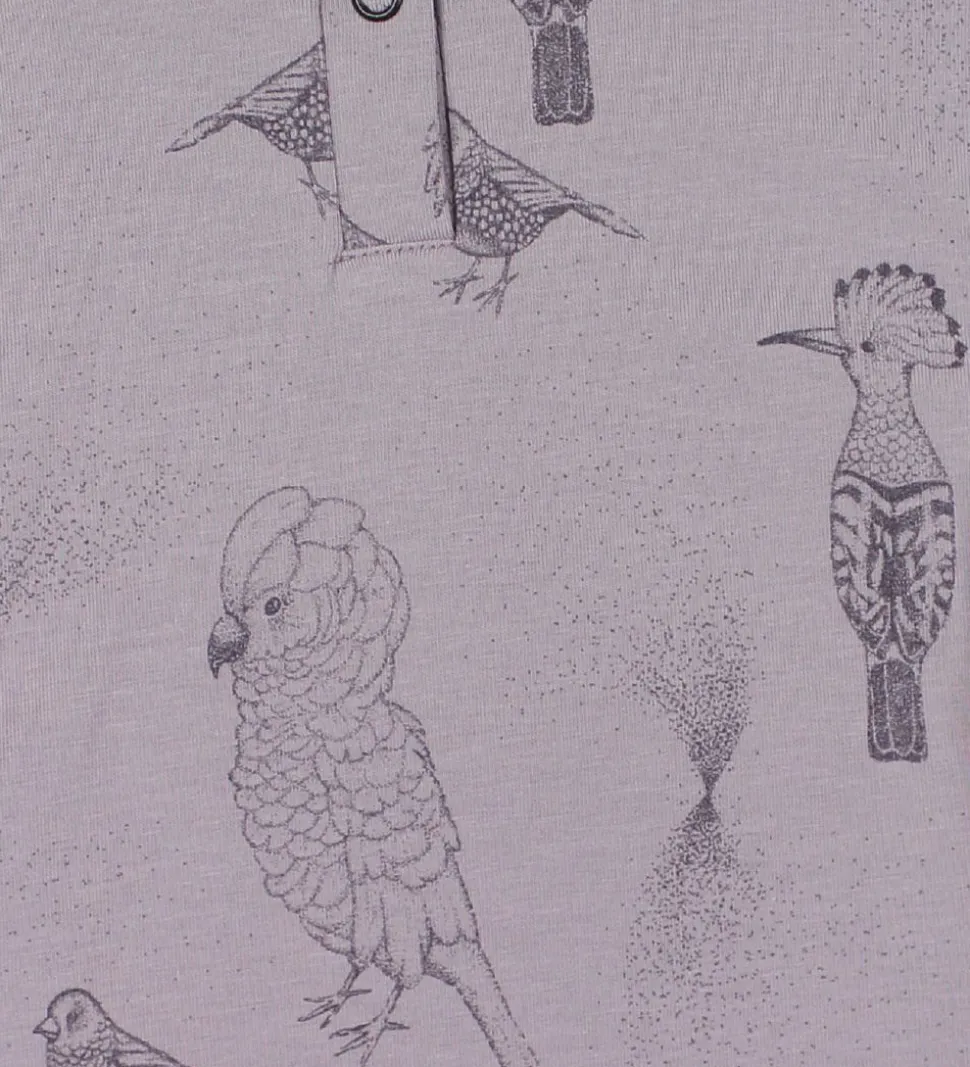 Lækker Fixoni sommerdragt i lilla med flot print af forskellige fugle og prikker.