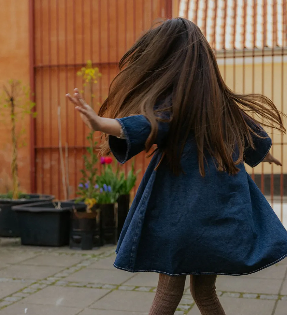 Stilfuld Fliink kjole i mørkeblå denim med korte ærmer. Kjolen har en klassisk krave og knaplukning foran. En enkelt brystlomme giver et praktisk element, mens Fliink kjolen har en flot A-form, der tilføjer et moderne touch.