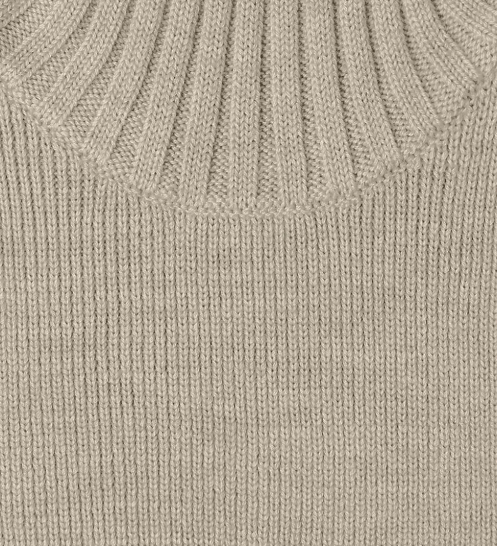 Flot FUB halsedisse i en klassisk, beige farve. Det ribbede strikdesign giver en tidløs struktur, som er både enkel og elegant. FUB halsedissen er designet med en høj krave, der sikrer en god pasform omkring halsen.