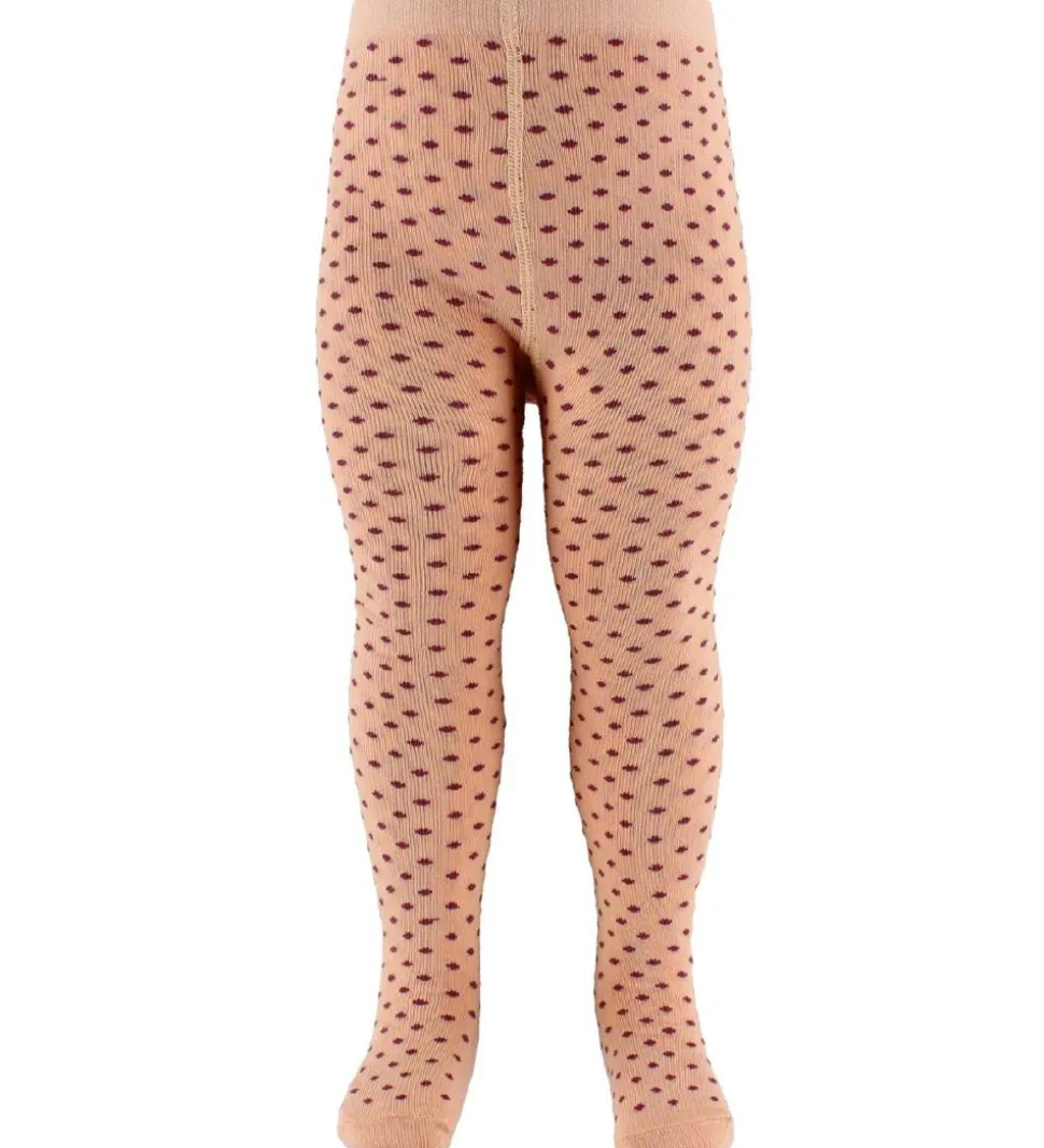 Dejlige Fuzzies strømpebukser i lys fersken m. bordeaux prikker over det hele.