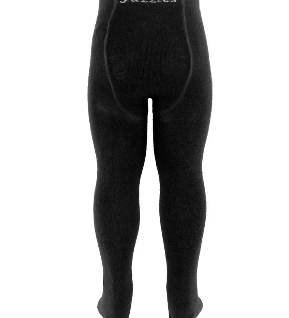 Lune Fuzzies uldstrømpebukser i sort med et gråt Fuzzies logo under foden.