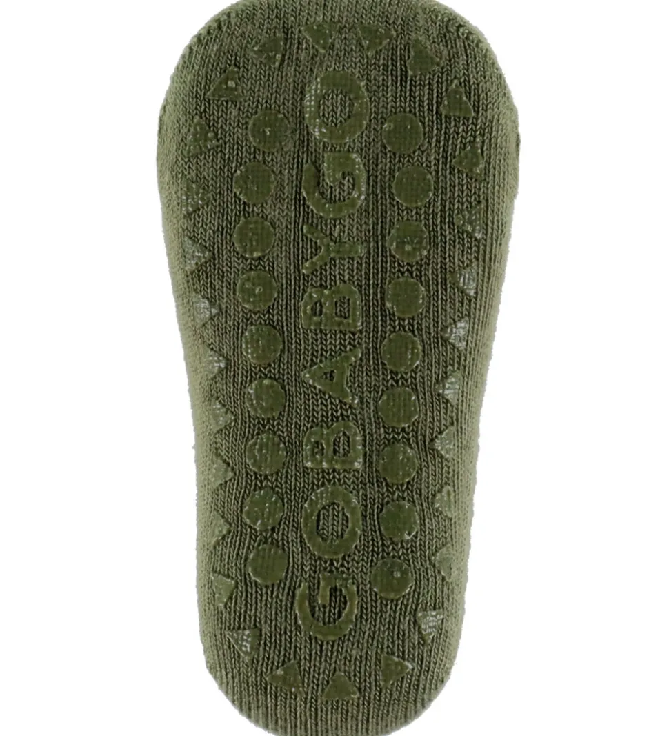 Smarte GoBabyGo skridsikre strømper i ensfarvet mørkegrøn.