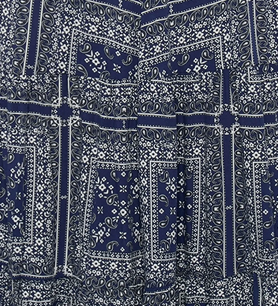 Elegant Grunt nederdel i navy med et flot alloverprint i hvid og sort. Grunt nederdelen har en let og luftig pasform, der gør den ideel til forskellige lejligheder.